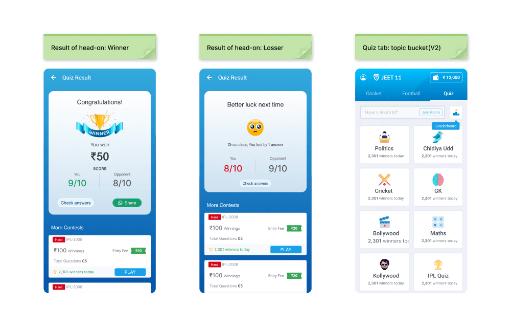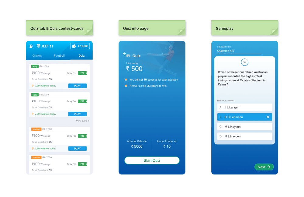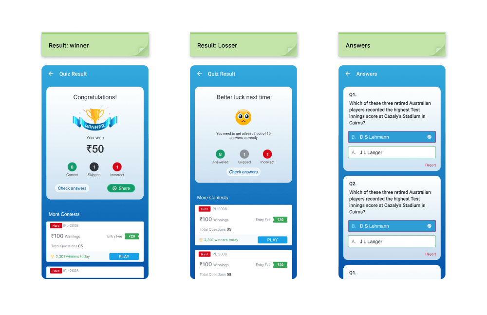 Increased Engagement: The quiz game added variety to the existing fantasy sports platform, appealing to users with different interests and driving up participation.