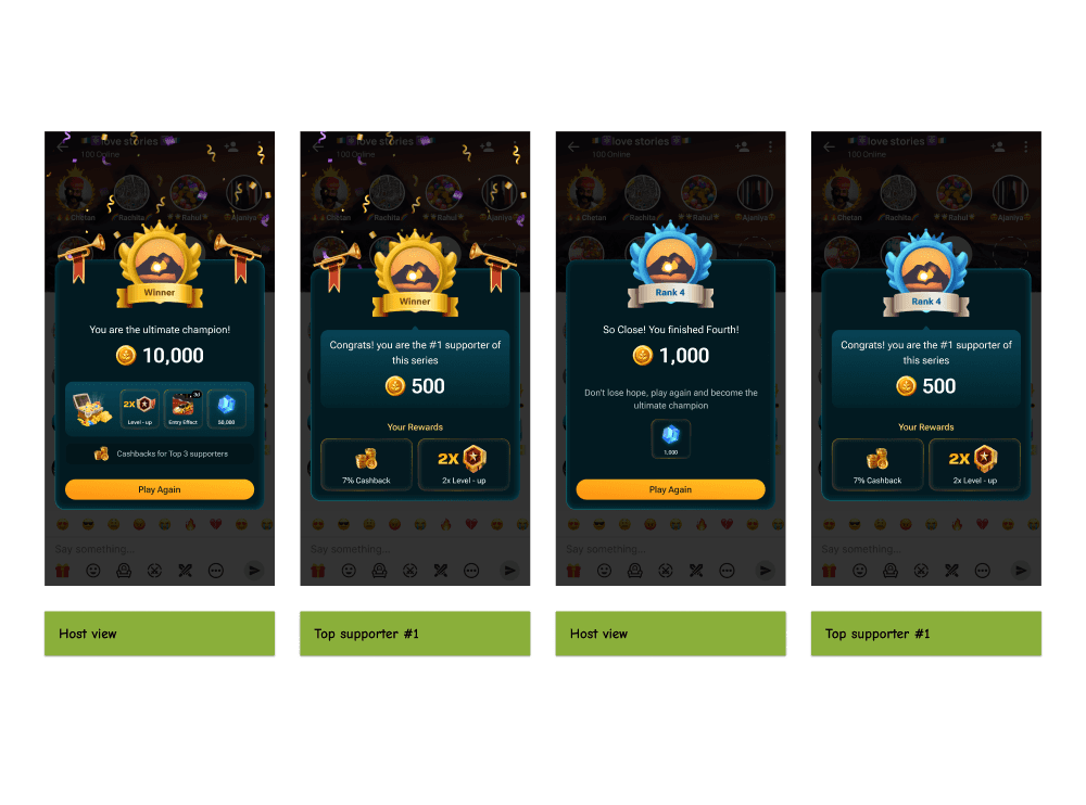 Developed a rewards system with higher incentives compared to other games, making this game more attractive to both hosts and gifters.